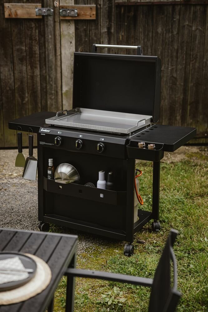Discover the new frontier of grilling with the AMARO® plancha grills from Enders. Unlike traditional grills, these feature spacious stainless steel planchas that deliver even heat distribution through continuously adjustable P-shaped burners. The plancha reaches the ideal temperature quickly, ensuring a delightful grilling experience. With a generous cooking area of 3140 cm², you can prepare multiple dishes simultaneously. The removable hood and fold-down side shelves provide protection and space-saving storage. A front storage compartment and side hooks offer ample room for spices, sauces, and grilling tools, while the removable baskets are perfect for utensils. AMARO® grills are designed for versatility and convenience, offering a superior barbecuing experience.