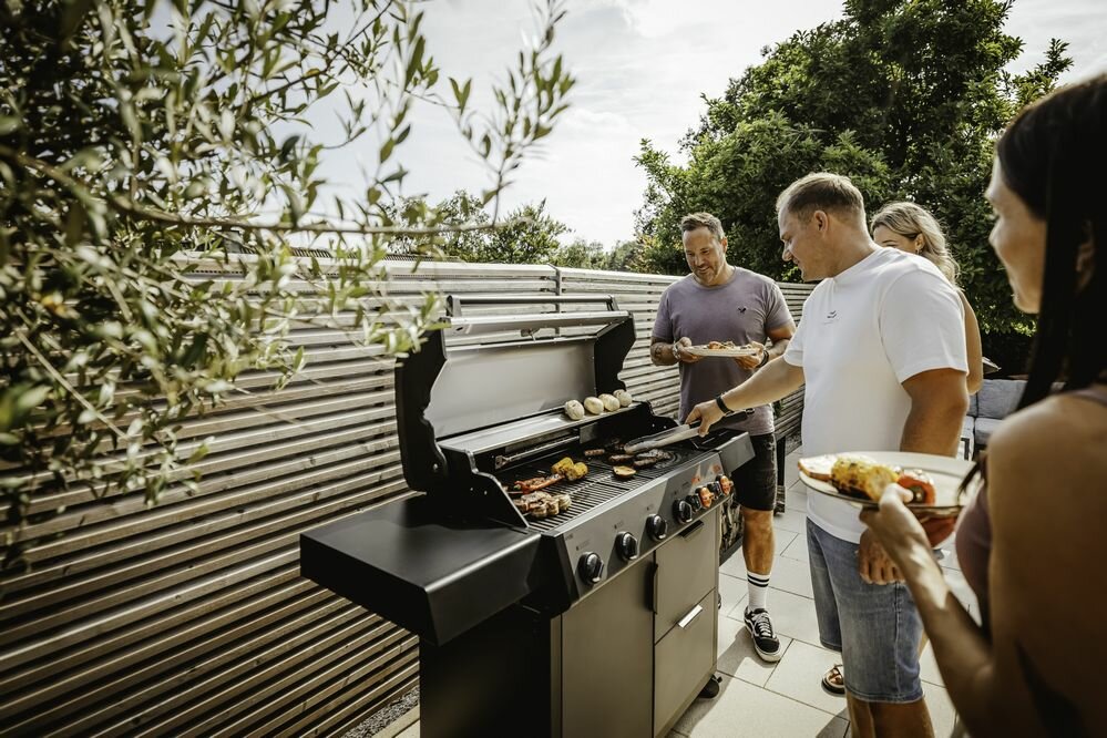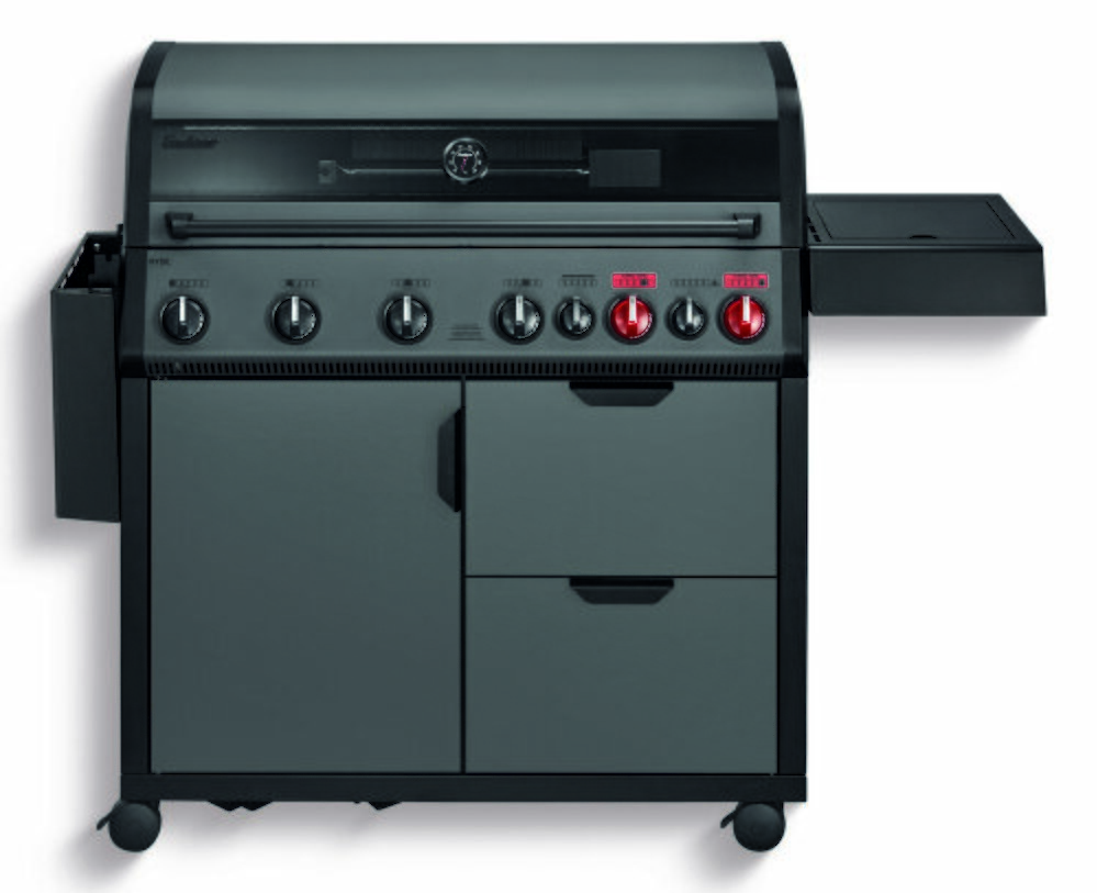 The HYDE® 6 is the ultimate choice for those who want to barbecue without limits, making it perfect for large gatherings with family and friends. This powerhouse grill features the dual 8°C TURBO ZONE™ with an infrared mesh, allowing you to reach extra high temperatures quickly for perfect searing. With six continuously adjustable stainless steel burners, you can enjoy powerful direct and indirect barbecuing or baking. The SWITCH GRID™ offers versatile grilling options with its enamelled cast iron grate, while the infrared back burner (3.5 kW) and side cooker (2.9 kW) add to its versatility. The practical viewing window ensures you can always monitor your food, and the spacious base cabinet, complete with drawers for accessories, enhances convenience. The HYDE® series is designed for those who refuse to compromise on quality and features, transforming any garden into a barbecue paradise.