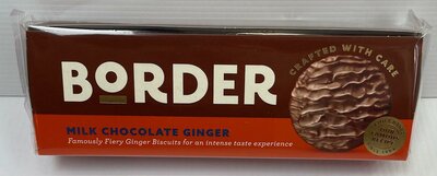Ingredients: Milk Chocolate (40%) (Sugar, Cocoa Mass, Cocoa Butter. Whole Milk Powder, Whey (Milk) Powder, Lactose, Emulsifier: Soya Lecithin), Wheat Flour (Calcium, Iron, Niacin, Thiamin), Sugar, Vegetable Oil (Palm. Rapeseed), Golden Syrup, Ground Ginger (1.5%), Raising Agents (Ammonium Bicarbonate, Sodium Bicarbonate), Salt. Allergy Advice: For allergens, including cereals containing gluten, see ingredients above. Also, may contain traces of egg, nut and sesame seeds.